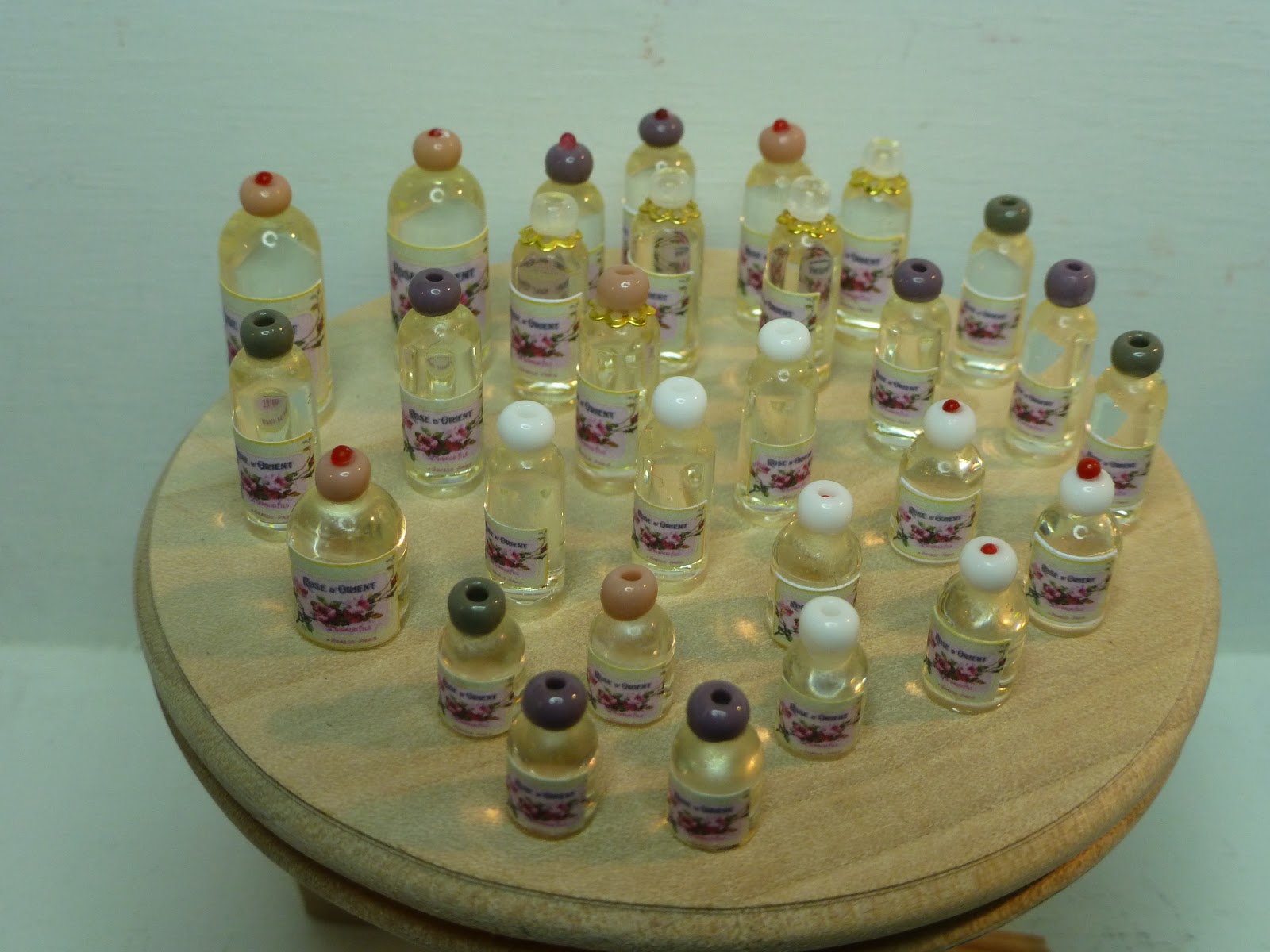 Just so you'll see that the brass bead caps I used are not necessary, here are a few pics of other bottles I made using simple beads as bottle caps